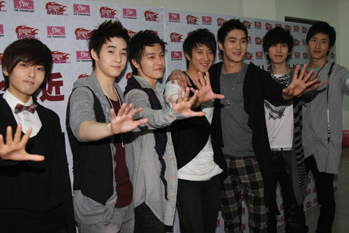 站在臺上的SJ-M7個成員,不時的互相交頭接耳,韓庚、始源的竊竊私語,東海、Henry的勾肩搭背,都成了令現(xiàn)場粉絲尖叫聲此起彼伏的導火線。