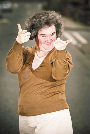 其貌不揚(yáng)的47歲英國(guó)無(wú)業(yè)大嫂蘇珊·博伊爾因?yàn)樵谟?guó)選秀節(jié)目《英國(guó)達(dá)人》中演唱了經(jīng)典的音樂(lè)劇曲目《我曾有夢(mèng)》而成為全球關(guān)注的焦點(diǎn)。不僅有關(guān)她的視頻點(diǎn)擊率成倍增長(zhǎng),而且她還得到了黛咪·摩爾和米克·賈格爾的盛贊,就連她的偶像伊蓮·佩姬還盛情邀請(qǐng)她一起表演。目前,SONYBMG公司已經(jīng)給蘇珊送上了一紙合約,年底前還將給她出專(zhuān)輯開(kāi)個(gè)唱。