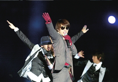 昨晚的演唱會(huì)嘉賓云集,舞臺(tái)設(shè)置也頗有陣勢(shì),在中心舞臺(tái)的四周分設(shè)了6個(gè)舞臺(tái)。晚7點(diǎn)半,《龍的傳人》前奏響起,成龍身穿白衣?lián)趔镜菆?chǎng),與所有的演出嘉賓合唱一首《龍的傳人》。