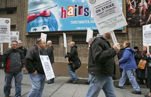這是當(dāng)?shù)氐奈枧_人員工會首次采取罷工行動。紐約市長彭博說他已經(jīng)和劇院負責(zé)人和舞臺人員對話。彭博說,雖然這是私人勞工糾紛,但所造成的經(jīng)濟影響甚廣,也遠超只是關(guān)閉劇院一天的影響。他表示市政府會繼續(xù)準備提供任何協(xié)助。