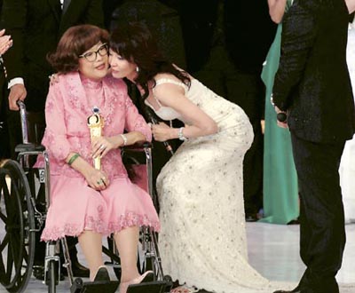 中新網(wǎng)11月19日電 香港無(wú)線(xiàn)2007“萬(wàn)千星輝頒獎(jiǎng)禮”前晚(17日,下同)舉行,現(xiàn)場(chǎng)整晚的高潮是肥姐親自接受“萬(wàn)千光輝演藝大獎(jiǎng)”。當(dāng)肥姐坐著輪椅出現(xiàn)時(shí),大會(huì)司儀鄭裕玲(嘟嘟)在另一邊已激動(dòng)得掩臉流淚。肥姐以堅(jiān)毅的語(yǔ)氣說(shuō)出不會(huì)放棄喜歡的電視事業(yè),那一刻,背后站著向她致敬的演員們不少已哭成淚人。