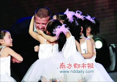| 日前,貝克漢姆在北京參加錄制湖南衛(wèi)視《快樂大本營》中國獨(dú)家球迷見面會特別節(jié)目,F(xiàn)場要送給貝克漢姆一份大禮,只見10個(gè)穿著白裙子的小女孩魚貫而入,這些看上去只有四五歲大的小姑娘一個(gè)個(gè)都雪白粉嫩、可愛得如同小公主,小貝愣在那兒,猜不出禮物是什么。何炅揭曉謎底了:“小貝和維多利亞一直想生個(gè)女兒,今天來了這么多小女孩,就當(dāng)給小貝沾點(diǎn)喜氣吧!必惪藵h姆聽完翻譯的解釋非常高興,蹲下身子摟著小女孩一個(gè)個(gè)親過來,非常溫柔。