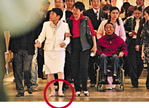 在蕓蕓眾星中,資格最老的當屬剛過了100歲生日的無線行政主席邵逸夫(六叔)。18日中午就來到澳門的他,19日中午在“六嬸”方逸華等人陪同下,精神奕奕展開澳門之旅。其間,身穿白色套裝的方逸華,竟赤腳閑逛名店林立的商場,又親自為六叔挑選新帽子,哄得六叔笑容滿面。