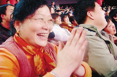 “‘裝’你們知道不?‘裝’在我們東北就是‘顯擺’的意思。你說我老師(指魏積安扮演的田教授)他多能裝呀!花5000塊錢買雙皮鞋,6000塊錢買塊手表,7000塊錢鑲口大金牙,然后一見我面就這樣:你看現(xiàn)在都8點了,我一會請你吃飯,你要不去我踢你……”這一段新加的臺詞配合著小沈陽夸張的齜牙咧嘴的動作,把現(xiàn)場的觀眾都笑翻了。坐在記者身邊一位40多歲的大姐一連笑一邊捂肚子,記者問她是東北人嗎?能聽懂小沈陽的笑料嗎?大姐還滿臉的納悶:“這還用分哪兒地方的人嗎?誰聽誰不樂呀!”從昨日的現(xiàn)場來看,為了突出小沈陽的個人魅力,有長達(dá)一分半鐘的時間都是小沈陽一個人在舞臺上脫口秀,而這段臺詞的“笑”果確實不同凡響,引起的笑聲比其余7分鐘都多。