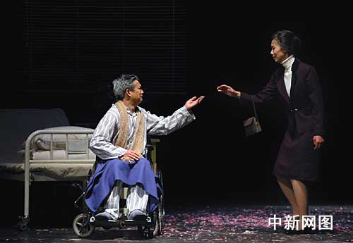 最后一幕的“壓軸場”是分別四十多年的云之凡和江濱柳在病房相見,黃磊和孫莉默契細膩的表演令全場觀眾為之動容,他們將看似平淡的兩位老年人之間的對話演繹得波瀾起伏,觀眾完全可以感受到云之凡在平靜外表下內(nèi)心的情緒起伏變化以及幾十年來的情感積累和煎熬。當孫莉與黃磊在臨別前最后一次握手時,劇場里的啜泣聲幾乎比平時大了一倍多,觀眾真正體會到當年《紐約僑報》評價該劇“最后一幕時劇場的墻壁幾乎要溶化掉”的感覺。