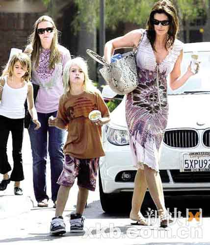 上周末,名模辛迪·克勞馥帶著兒子和女兒出游,享受閑暇時(shí)光。辛迪一身夏日休閑裝扮亮相,雖已年過40歲,但身材非常苗條。辛迪的兒子已經(jīng)8歲,是個(gè)金發(fā)小帥哥。這個(gè)帥氣的小家伙和媽媽都手拿冰淇淋,其樂融融。辛迪的女兒6歲了,眼睛和母親長(zhǎng)得很像,還遺傳了母親的棕色頭發(fā),非常美麗。