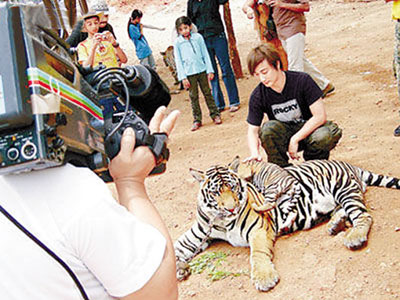 方力申日前到泰國老虎寺拍攝《向世界出發(fā)》第三輯,與張牙舞爪的大老虎并肩而行,他給老虎洗澡、喂奶。為安全起見,事前他已買高額保險(xiǎn)并打破傷風(fēng)針,以防萬一。