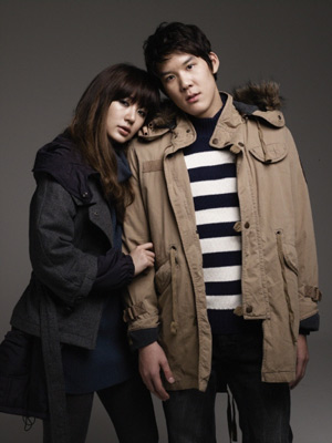 尹恩惠與韓國(guó)游泳名將樸泰桓合拍冬季服裝畫(huà)報(bào)