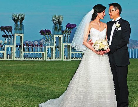許晉亨和李嘉欣昨日完婚,一對(duì)新人穿上禮服行禮,十分匹配。