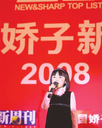 昨晚的頒獎(jiǎng)典禮一開始,一陣天籟般的童聲就從會場傳來,一個(gè)留著娃娃頭的可愛小姑娘唱著《歌唱祖國》登上了舞臺。她就是奧運(yùn)會開幕式那首《歌唱祖國》的演唱者楊沛宜。楊沛宜在這次中國嬌子新銳榜中獲得了“2008年最美的聲音”,巴蜀鬼才魏明倫成為了她的頒獎(jiǎng)嘉賓。