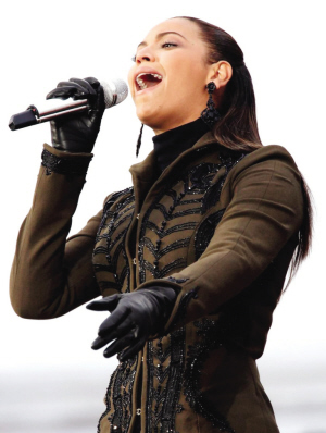 壓軸上場(chǎng)的格萊美得獎(jiǎng)女歌手碧昂斯以一曲《美麗的亞美利加》引發(fā)全場(chǎng)大合唱,嘹亮、激昂的歌聲在現(xiàn)場(chǎng)上空久久回蕩。