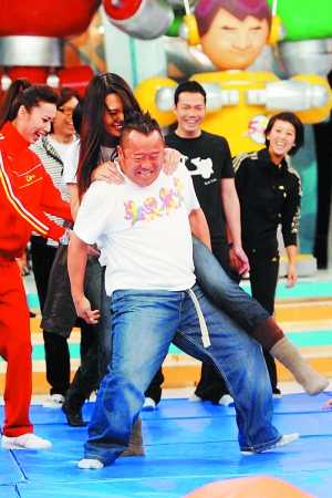 曾志偉日前放開獎門人身份,親自組隊下場玩《鐵甲無敵獎門人》。他在“人肉呼拉圈”環(huán)節(jié)中抱起有“長腳蟹”之稱的港姐呂慧儀,因二人身高相差懸殊,呂慧儀不管怎么轉,腳都不會離地,被兩位嘉賓主持譚詠麟(阿倫)、吳君如質(zhì)疑犯規(guī)!志偉反擊逼阿倫下場玩,他推搪道:“不好意思,我家庭壓力大,心血少呀!”