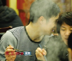 “小沈陽笑轉(zhuǎn)2009全國巡演”在北京首站演出大獲成功后,小沈陽3月8日帶著妻子沈春陽和劉老根大舞臺的師兄弟們在一家酒店里涮火鍋吃慶功宴。眾人胃口大開要了兩瓶紅酒,一邊喝酒一邊海聊。小沈陽不時歪頭和身旁的妻子說悄悄話。