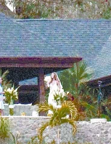 攝影師冒著“生命危險”拍下的婚禮現(xiàn)場圖。依稀可見身穿白紗的吉賽爾·邦辰。據(jù)報道,保鏢們在“誓死”保衛(wèi)主人時,新娘子對婚禮上的“槍戰(zhàn)”一無所知。
