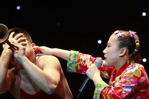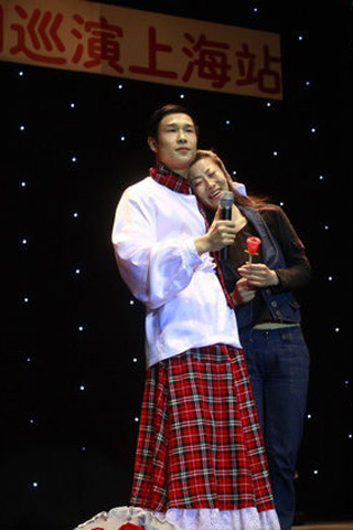 中新網(wǎng)4月27日電 《劉老根大舞臺》小沈陽笑轉(zhuǎn)2009,全國巡演上海站昨晚(26日)在上海大舞臺(上海體育館)拉開序幕,王金龍和毛毛(丫蛋)夫婦同臺獻(xiàn)藝,毛毛上演了野蠻老婆的戲碼。丫蛋以野蠻的招數(shù)著稱,這次剛剛新婚不久的夫妻二人,給上海的觀眾朋友們來了個以外驚喜。觀眾的歡呼聲讓整個體育館達(dá)到了高潮。