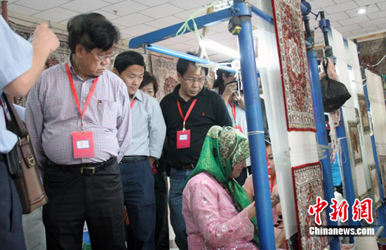 當(dāng)日,在風(fēng)情濃郁的香妃墓、艾提尕爾清真寺,海外僑領(lǐng)紛紛詢問導(dǎo)游有關(guān)維吾爾族風(fēng)格建筑、風(fēng)土人情、歷史文化等事宜。特別是在喀什民間手工藝品中心,海外僑領(lǐng)更是被手工地毯、和田玉等當(dāng)?shù)靥禺a(chǎn)所吸引。來自法國(guó)的法國(guó)卡麗娜首飾進(jìn)出口公司邱小華女士購(gòu)買了4塊和田玉。她說,帶回去送給法國(guó)的朋友,讓他們看看新疆的美玉。