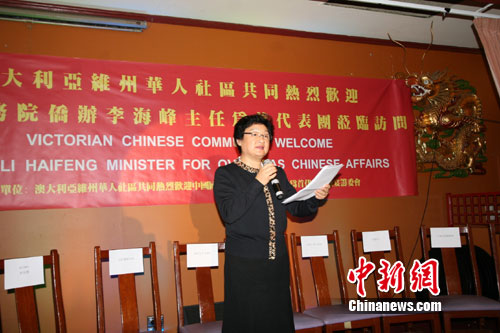 中新社墨爾本10月28日電 (記者 朱大強(qiáng))中國(guó)國(guó)務(wù)院僑辦主任李海峰28日晚在墨爾本僑界舉行的歡迎宴會(huì)上表示,國(guó)務(wù)院僑辦是中國(guó)政府主管僑務(wù)工作的職能部門,將密切與海外華僑華人的聯(lián)系,支持海外僑胞生存發(fā)展。