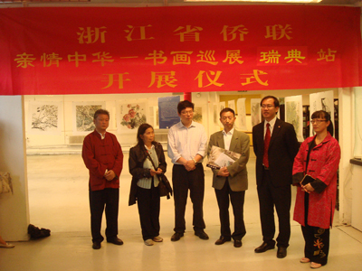 中新網(wǎng)9月11日電 在新中國(guó)成立60周年之際,應(yīng)瑞典瑞京華人協(xié)會(huì)、丹麥中華工商聯(lián)合協(xié)會(huì)、挪威浙江華人華僑聯(lián)誼總會(huì)等僑團(tuán)的邀請(qǐng),8月21日至9月2日,浙江省僑聯(lián)聯(lián)合浙江省逸仙書(shū)畫(huà)院,在浙江省僑聯(lián)黨組成員、秘書(shū)長(zhǎng)張維仁帶領(lǐng)下,組織省內(nèi)知名畫(huà)家和瑞安、諸暨僑聯(lián)主席等一行6人赴瑞典、丹麥、挪威開(kāi)展以“親情中華——書(shū)畫(huà)巡展”為主要內(nèi)容的文化交流訪問(wèn)。