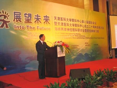 25日晚,天津醫(yī)科大學眼科中心第八屆國際會議暨天津醫(yī)科大學眼科中心成立二十周年慶;顒釉谔旖蛸愊缶频昱e行,喬衛(wèi)代表中國僑聯(lián)向眼科中心表示祝賀,他說,天津醫(yī)科大學眼科中心作為中國僑聯(lián)“科教興國示范基地”,曾多次參與中國僑聯(lián)組織的“健康復明行動”,在各家基地中發(fā)揮了非常好的典型示范作用,祝愿眼科中心越辦越好。