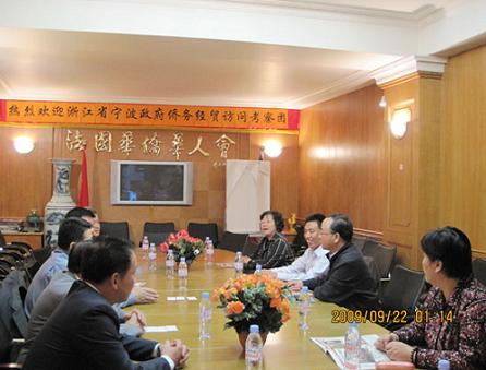 在法國期間,訪問團拜訪了法國華僑華人會。現(xiàn)任主席陳勝武及副主席張過祥、陳其躍等負責(zé)人,熱情接待了訪問團,相互進行了座談;訪問團還參觀了位于巴黎市中心四區(qū)的會所、文化中心,及中華文化學(xué)校。通過座談參觀,訪問團了解到,近年來,隨著中國國力迅速增長,旅法華人地位不斷提高,華人也在改變過去不關(guān)心政治的慣例,正在努力融入當(dāng)?shù)刂髁魃鐣TL問團與法國華僑華人會互贈了禮品;法國歐華歷史學(xué)會會長葉星球還向訪問團贈送了其撰寫的《法國華人三百年》一書。