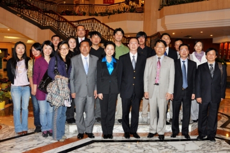 董中原說,今年是中韓兩國建交17周年,中韓自1992年建交以來,兩國關系迅速全面發(fā)展。雙方高層交往頻繁,政治互信不斷深化,經(jīng)貿合作持續(xù)擴大,人文交流方興未艾,“韓流”、“漢風”交相輝映,兩國人民之間的相互理解和友誼不斷加深。中韓兩國地理相鄰、文化相近,民間交流在兩國關系中扮演著重要角色,雙方開展的豐富多彩的文化交流活動,拉近了兩國人民之間的感情和距離。頻繁活躍的人員往來,使得中韓民間交流與合作充滿活力,呈現(xiàn)出多渠道、全方位和形式多樣的特點。“中華情-韓中情·歡聚首爾”大型晚會的舉辦將為增進兩國人民傳統(tǒng)友誼、加強兩國文化交流產生積極和深遠的影響,衷心祝愿晚會圓滿成功。