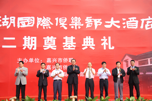 中國僑聯(lián)副主席、浙江省僑聯(lián)主席王成云、嘉興市委常委、市紀(jì)委書記馮志禮等領(lǐng)導(dǎo)以及市級有關(guān)部門、南湖區(qū)委、區(qū)政府、南湖國際俱樂部二期項目投資方、建設(shè)單位、市多家媒體等近100人出席了奠基儀式。