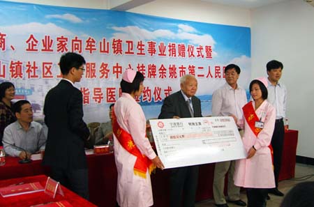 魏紹相先生祖籍余姚市牟山鎮(zhèn),早年離鄉(xiāng)赴港經(jīng)商,目前為香港恒豐喉業(yè)有限公司董事長。改革開放后,尤其是上世紀九十年代以來,魏先生幾乎每年回故里省親訪友,并慷慨解囊,其捐贈項目之多、捐贈地域之廣,是余姚市海外僑胞、港澳同胞熱心捐贈事業(yè)的典范。此次,魏紹相先生又參加了“牟山鎮(zhèn)僑商、企業(yè)家向衛(wèi)生事業(yè)捐贈儀式”和“余姚市人民醫(yī)院‘魏紹相先生愛心捐贈簽約儀式’”。