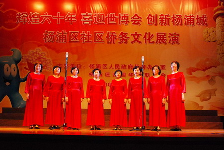 中新網(wǎng)10月26日電 10月21日下午,“輝煌六十年喜迎世博會創(chuàng)新楊浦城”——上海市楊浦區(qū)社區(qū)僑務(wù)文化展演活動在楊浦區(qū)文化館舉行。上海市僑辦副主任陳文佳,副區(qū)長馬杰富,區(qū)委統(tǒng)戰(zhàn)部副部長、區(qū)政府僑辦主任胡耀良,區(qū)僑聯(lián)主席曹國強等出席活動。社區(qū)歸僑僑眷及(僑界人士)代表近500人參加活動。