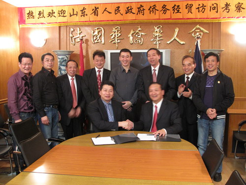 雙方一致同意,今后進(jìn)一步加強(qiáng)信息交流,互相支持,開展實(shí)質(zhì)性合作。山東省海外交流協(xié)會(huì)副會(huì)長(zhǎng)史進(jìn)與華僑華人會(huì)會(huì)長(zhǎng)陳勝武在友好關(guān)系協(xié)議書上簽字。