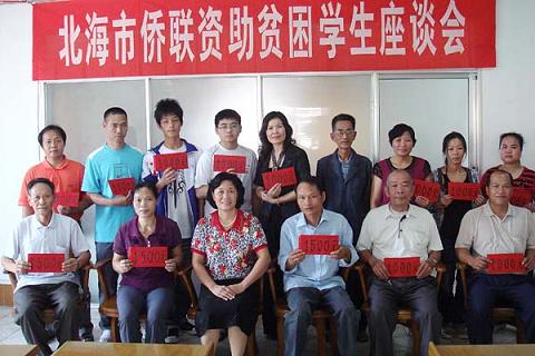 中新網(wǎng)11月2日電 10月24日上午,廣西自治區(qū)北海市僑聯(lián)召開今年的第三次資助貧困學(xué)生座談會,為官澤嬋、張遠寧、廖丹丹3名貧困大學(xué)生和許程程等10名貧困中學(xué)生,分別資助每人每學(xué)年1500元和1000元,當(dāng)天共計發(fā)放由廣西僑聯(lián)華僑愛心基金會海內(nèi)外華人華僑、企業(yè)家和愛心人士捐助的助學(xué)金14500元。