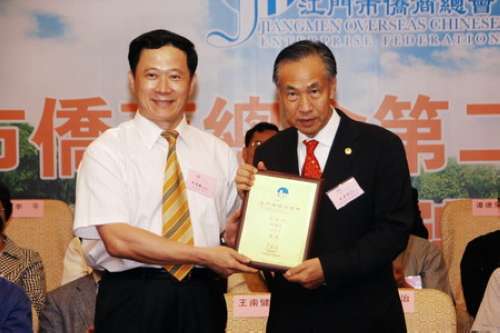 據(jù)悉,江門市僑商總會(huì)于2006年5月11日正式成立,現(xiàn)有會(huì)員單位130多個(gè)。三年多來,江門市僑商總會(huì)在經(jīng)濟(jì)社會(huì)發(fā)展進(jìn)程中發(fā)揮著重要的作用,如在慈善公益事業(yè)方面,據(jù)不完全統(tǒng)計(jì),各會(huì)員企業(yè)已向市慈善會(huì)捐款二千四百多萬元,受到了中國(guó)僑商會(huì)的表揚(yáng)。吳榮治作為一個(gè)成功的企業(yè)家和宅心仁厚的長(zhǎng)者,除了率先回鄉(xiāng)投資辦實(shí)業(yè)外還踴躍捐贈(zèng)資金,不遺余力參與公益事業(yè)。曾為修復(fù)開平古跡“開元塔”捐資100萬元,為“開平碉樓與村落”的申遺捐資100萬元,為支持家鄉(xiāng)10多間中、小學(xué)辦學(xué)、為資助特困群眾和學(xué)生以及賑災(zāi)救災(zāi)捐贈(zèng)。據(jù)不完全統(tǒng)計(jì),至今,吳榮治先生已為家鄉(xiāng)捐資逾1000萬元。吳榮治先生現(xiàn)任中國(guó)僑商投資企業(yè)協(xié)會(huì)常務(wù)理事、廣東國(guó)際華商會(huì)副會(huì)長(zhǎng)、江門市僑商總會(huì)會(huì)長(zhǎng)、江門市及開平市政協(xié)常委、香港珠三角工業(yè)協(xié)會(huì)江門地區(qū)主席、香港廣東社團(tuán)總會(huì)名譽(yù)會(huì)長(zhǎng)、香港孔教學(xué)院副院長(zhǎng)、香港開平同鄉(xiāng)會(huì)永遠(yuǎn)名譽(yù)會(huì)長(zhǎng)、香港特別行政區(qū)第三屆選舉委員會(huì)委員等職務(wù)。吳榮治先生曾榮獲江門市、開平市首批榮譽(yù)市民,振興開平特別貢獻(xiàn)獎(jiǎng),文化建設(shè)杰出貢獻(xiàn)獎(jiǎng)等殊榮。