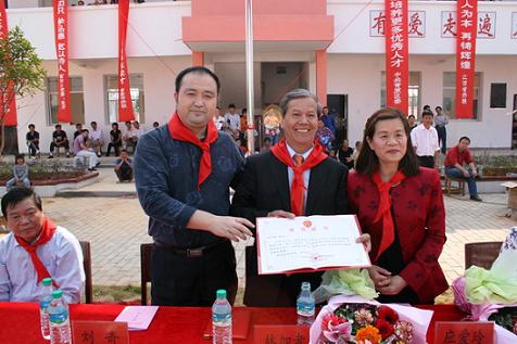 慶典由吉安市青原區(qū)政府區(qū)長(zhǎng)助理陳年勝主持。首先,少先隊(duì)員向林加者夫婦敬獻(xiàn)鮮花,并為主席臺(tái)各位領(lǐng)導(dǎo)嘉賓佩帶紅領(lǐng)巾。江西省僑聯(lián)主席周錦和青原區(qū)政府區(qū)長(zhǎng)肖兵發(fā)表了熱情洋溢的講話,他們對(duì)新學(xué)校的落成表示熱烈的祝賀,對(duì)林加者夫婦的愛心表示衷心的感謝,對(duì)全體師生提出了殷切的希望。學(xué)生代表和加愛僑心小學(xué)校長(zhǎng)作了發(fā)言,表達(dá)了全體師生在新環(huán)境學(xué)習(xí)、工作的喜悅,對(duì)林加者夫婦的愛心由衷感激,表示一定要勤奮學(xué)習(xí)、刻苦鉆研、自立自強(qiáng),不辜負(fù)林加者夫婦的一片愛心。