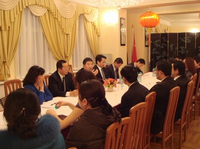 當(dāng)晚,中國駐圣彼得堡總領(lǐng)事田二龍會見并宴請國僑辦代表團(tuán)一行。