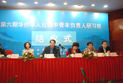 結(jié)業(yè)式前,許又聲與全體學(xué)員舉行了座談交流。來自北美洲、南太平洋地區(qū)9個國家和地區(qū)的48位僑團(tuán)中青年負(fù)責(zé)人圍繞“如何展示中國僑民新形象,為祖(籍)國增光添彩”這一主題進(jìn)行了深入而熱烈的討論,就進(jìn)一步融入主流社會、增進(jìn)與其他族裔溝通、關(guān)心和參與住在國政治生活、加強(qiáng)僑胞文明禮貌教育、促進(jìn)僑胞內(nèi)部團(tuán)結(jié)、共同建設(shè)和諧僑社等建言獻(xiàn)策。
