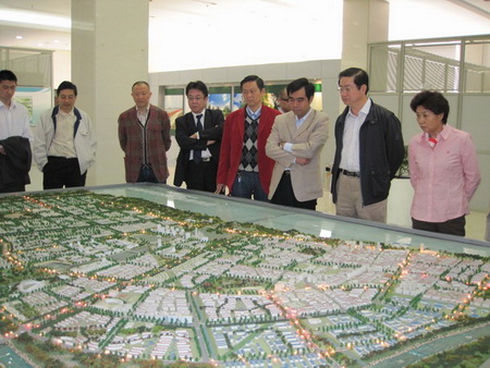 考察團一行首先到崇明規(guī)劃展示廳,觀看了崇明三島規(guī)劃模型示和情況介紹,并實地考察了西沙濕地公園和綠化鎮(zhèn)華西村。