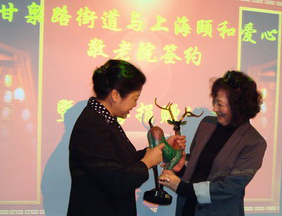 普陀區(qū)委常委、統(tǒng)戰(zhàn)部部長夏斯德在儀式上高度贊揚楊詠曼充滿愛心和人道主義精神的善舉,并建議她將香港先進的養(yǎng)老經(jīng)驗引進到甘泉,將敬老院辦出特色。