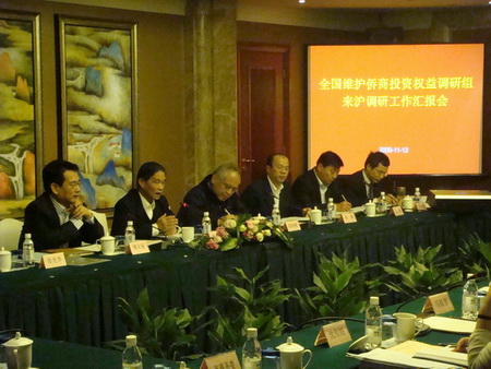 12日下午,上海維護僑商投資權益聯(lián)合調(diào)研工作匯報會和僑商座談會在上海衡山賓館召開。上海市僑辦主任崔明華向調(diào)研組匯報了上海維護僑商權益工作的基本情況、基本做法、主要體會和工作建議。上!拔鍍S”及相關委辦局的負責人參加匯報會并介紹上海各部門維護僑商權益工作情況。