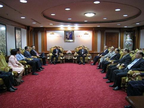 中新網(wǎng)11月18日電 據(jù)廣東僑網(wǎng)消息,應(yīng)泰國中華總商會的邀請,近日,廣東省汕頭市潮南區(qū)委書記、區(qū)人大常委會主任林合坤率團(tuán)抵達(dá)泰國看望旅泰眾鄉(xiāng)親。訪問團(tuán)一行先后訪問了泰國中華總商會、泰國華人青年商會、泰國潮陽同鄉(xiāng)會等僑團(tuán)以及有關(guān)企業(yè);拜訪了陳有漢、吳宏豐、李光隆、張朝江、李桂雄等僑領(lǐng)、鄉(xiāng)親共100多人,并召開了潮南投資環(huán)境推介會!秮喼奕請蟆返5家泰國華文報紙在顯眼位置報道了訪問情況。