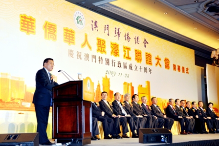 中新網(wǎng)11月25日電 據(jù)中國僑聯(lián)網(wǎng)站消息,11月23日至24日,由澳門歸僑總會(huì)主辦的“2009華僑華人聚濠江聯(lián)誼大會(huì)”在澳門舉行。中國僑聯(lián)主席林軍,國務(wù)院僑辦副主任許又聲以及來自世界56個(gè)國家和地區(qū)的華僑華人代表以及內(nèi)地僑界嘉賓共1000多人應(yīng)邀出席。澳門特別行政區(qū)行政長(zhǎng)官何厚鏵到會(huì)講話,中央人民政府駐澳門聯(lián)絡(luò)辦副主任徐澤、外交部駐澳門特派員盧樹民等到會(huì)祝賀。
