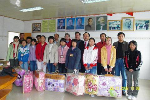 玉林市僑聯(lián)還向這10名學(xué)生分別贈送了棉被。