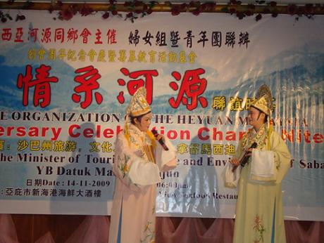 在進(jìn)行鳴鑼開幕儀式、贈(zèng)送紀(jì)念品儀式和一周年切蛋糕儀式后,一臺(tái)結(jié)合馬來(lái)西亞本地文化與河源客家文化的聯(lián)誼晚會(huì)精彩上演。作為中國(guó)首批國(guó)家級(jí)非物質(zhì)文化遺產(chǎn)的紫金花朝戲及被廣東省僑辦、省文化廳、省旅游局確定為廣東省首批中華文化傳承基地的花朝戲劇團(tuán),其所帶來(lái)的傳統(tǒng)花朝戲《賣雜貨》、《梁山伯與祝英臺(tái)》等節(jié)目被重點(diǎn)推出,演員們也不負(fù)眾望,精彩詼諧的表演讓全場(chǎng)嘉賓大飽眼福,獲得熱烈掌聲。