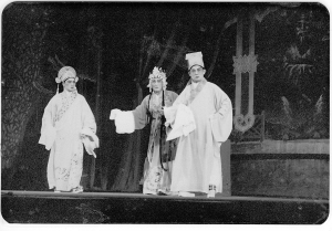 這是一張當(dāng)年的廣東瓊劇院(現(xiàn)海南省瓊劇院)組團(tuán)出訪新加坡時(shí)的演出劇照。作為新中國(guó)成立后瓊劇第一次走出國(guó)門(mén)的大事件,不但引起當(dāng)時(shí)內(nèi)地戲劇界的高度關(guān)注,而且同樣也在新加坡眾多海南鄉(xiāng)親中引起了極大轟動(dòng)。