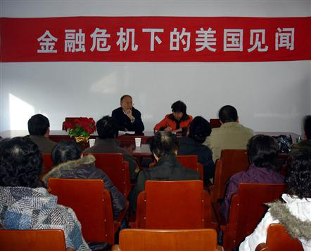 中新網(wǎng)12月10日電 據(jù)連云港市僑聯(lián)消息,近日,連云港市僑聯(lián)邀請剛從美國探親歸來的連云港市新華僑華人、留學(xué)人員眷屬聯(lián)誼會副會長蘆旭,作了一場《金融危機下的美國見聞》專題講座。各縣區(qū)僑聯(lián)負(fù)責(zé)人,市僑聯(lián)機關(guān)干部及歸僑僑眷代表50余人參加。