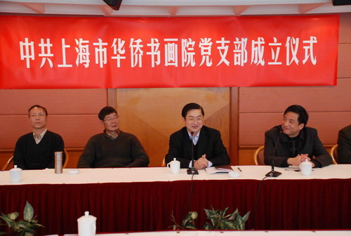 上海市僑辦主任、黨組書記崔明華出席并講話。他高度評價了華僑書畫院的書畫家們在弘揚中華優(yōu)秀傳統(tǒng)文化、熱衷社會公益事業(yè)等方面作出的積極貢獻,向加入書畫院黨組織的黨員書畫家們表示熱誠地歡迎。
