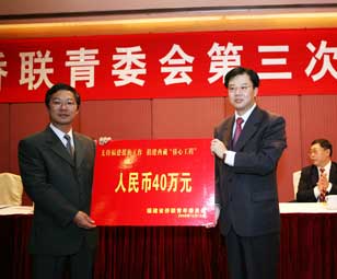 會(huì)上,還舉行了福建省僑聯(lián)青委會(huì)向省對(duì)口辦捐贈(zèng)40萬元援藏“僑心工程”善款的現(xiàn)場捐贈(zèng)儀式。