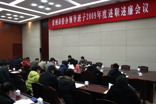 中新網(wǎng)12月22日電 據(jù)常州市僑辦消息,12月19日,江蘇省常州市僑辦領(lǐng)導(dǎo)班子2009年度述職述廉會(huì)議在行政中心青云廳召開。常州市、轄市、區(qū)僑辦主任、副主任,市僑辦全體機(jī)關(guān)干部,市僑辦機(jī)關(guān)作風(fēng)監(jiān)督員參加了會(huì)議。