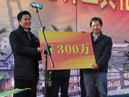 中新網(wǎng)12月31日電 據(jù)青田縣發(fā)展和改革局消息,12月28日,浙江省青田縣高市旅游接待中心舉行開工典禮。中國(guó)僑聯(lián)副主席、寧夏回族自治區(qū)僑聯(lián)主席、浙江省僑聯(lián)青年總會(huì)榮譽(yù)會(huì)長(zhǎng)朱奕龍為開工典禮剪彩,并為高市村新農(nóng)村建設(shè)個(gè)人捐贈(zèng)300萬(wàn)元,青田縣領(lǐng)導(dǎo)王通林、楊雷、葉選君、陳海民、呂大德、舒志勇及縣相關(guān)職能部門代表參加了儀式。