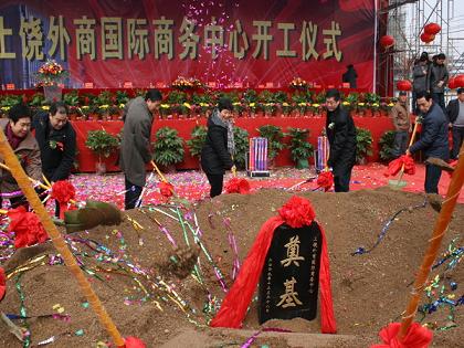 最后,由周錦宣布上饒外商國(guó)際商務(wù)中心正式開(kāi)工,并為工程奠基,頓時(shí),鞭炮齊鳴、彩球飄舞、鑼鼓喧天、禮花漫天開(kāi)放,整個(gè)典禮儀式氣氛達(dá)到了高潮。