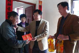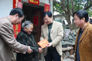 一來到仙游縣榜頭鎮(zhèn)印尼歸僑楊啟榮家,林澤春就帶領同行人員進屋察看他家那原瀕臨倒塌的土墻,當發(fā)現原來的那堵土墻已換成了磚墻時,連聲說,改造成磚墻到下大雨時再也不用擔心墻倒下來了。當細心的林澤春發(fā)現房間里很暗但沒有電燈,了解到因一人獨居沒有收入家中還沒通電時,立即交待隨行的鎮(zhèn)黨委書記,要多多關心困難歸僑,臨近春節(jié)沒有電生活會極不方便。村主任解釋說,電工已來他家兩次,都沒遇到人,保證今天晚上通上電,另外老楊的最低生活保障也已報批。當楊啟榮從林澤春手中接到慰問金時,感激之情不能言表。