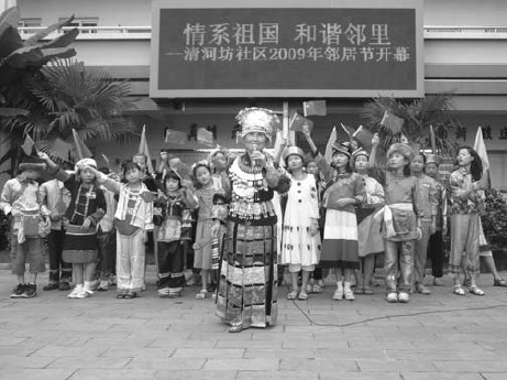 這次澳門回歸10周年,潘曼霞夫婦倆再次受到了邀請(qǐng),潘曼霞由大女兒陪同,參加澳門十周年慶典。這次,老人再次帶去了嶄新的28套民族服裝。當(dāng)澳門勞工子弟學(xué)校的學(xué)生們?cè)俅未┥吓寺夹聨?lái)的28套民族服裝,為老人載歌載舞,歡迎老人時(shí),老人也很開心。